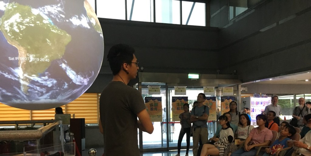 記得我剛到氣象局報到的時候,一走進大廳就對那顆醒目的大球印象深刻。幾年過去了,我成為SOS解說小組的一員,跟著團隊面對過許多群眾。大部分的觀眾落在15歲到30歲之間,很高的比例是國高中或大學學生。這時候通常可以聊一些基本的地科知識,尤其是課本中或新聞上出現過的玩意兒。