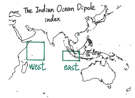- IOD east: 90°E to 110°E and 10°S to 0°S