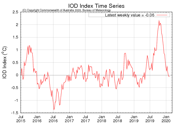 當IOD指數大於0.4度時,澳洲氣候學家便認為是正相位;小於0.4度則為負相位。澳洲會如此重視的原因,是因為這個震盪會影響澳洲的降水與氣溫,並且會對澳洲的農業與生態產生重大影響。